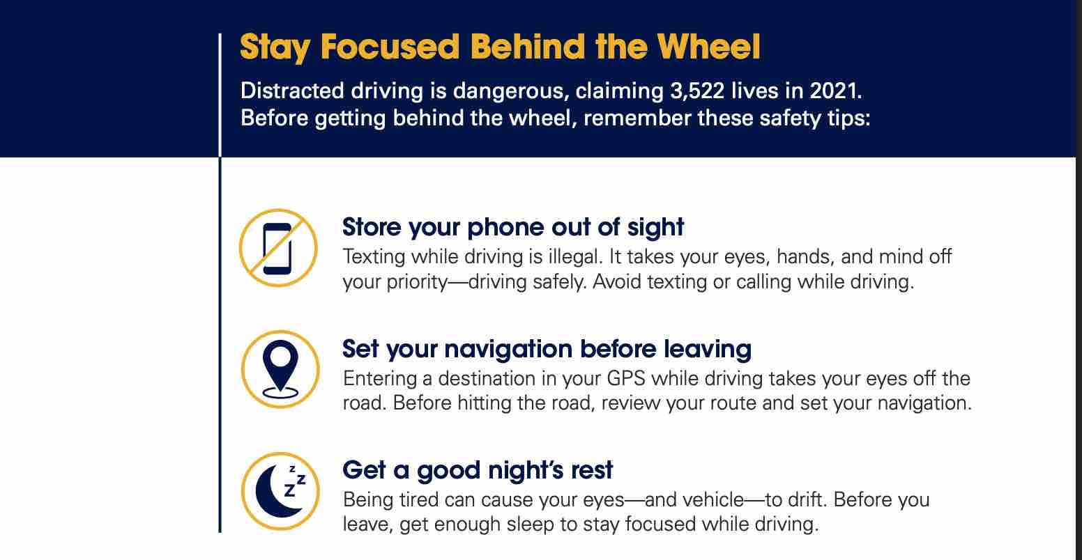 When a driver takes their eyes off the road for just 5 seconds while traveling at highway speeds, they end up going approximately 440 feet—that’s the length of a football field—without even knowing it. During those 5 seconds, traffic patterns can change, cars can brake suddenly, or a pedestrian can step out onto the road.
